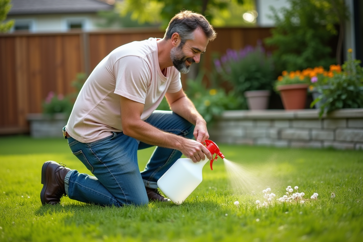 Certains cherchent un désherbant sélectif pour gazon à base naturelle. Attention aux mélanges contenant du vinaigre ou du sel : s’ils éliminent bien les herbes, ils peuvent aussi brûler irrémédiablement la pelouse. Limitez leur usage aux bordures ou allées, loin du gazon à conserver.
